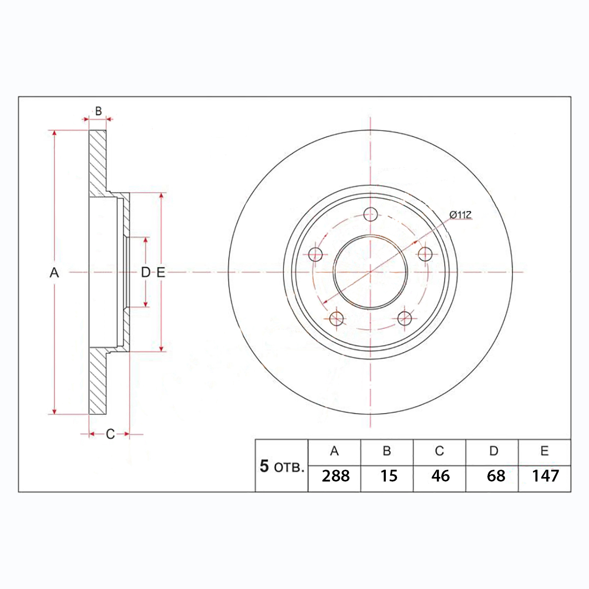 Диск тормозной передний Audi 100 '90-'94/ A4 '94-'01 (288 *15 *5x112) Delphi