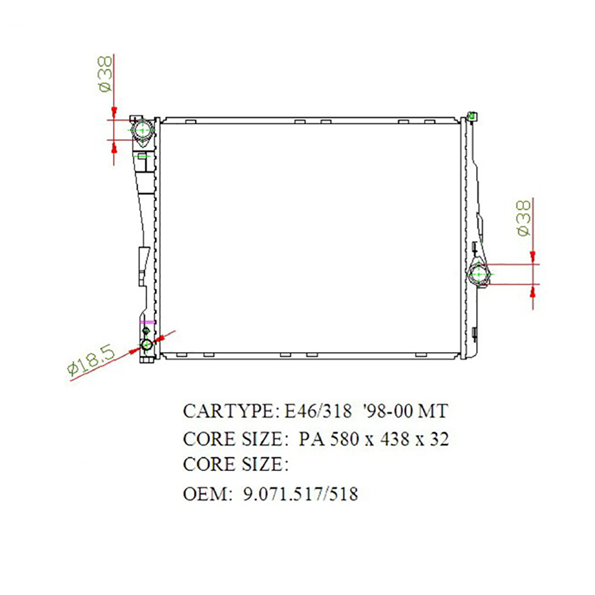 Радиатор охлаждения BMW 3 Series '98-'06 (M43B16-164E3, N45B16A, M43B19-194E1, N42B20A, N46B20, M50B20-206S2, M54B22-226S1, M52B25-256S4, M54B25-256S5, N42B18A, N46B18, N47D20, M52B20-206S4, M47D20, N43B20) Panda
