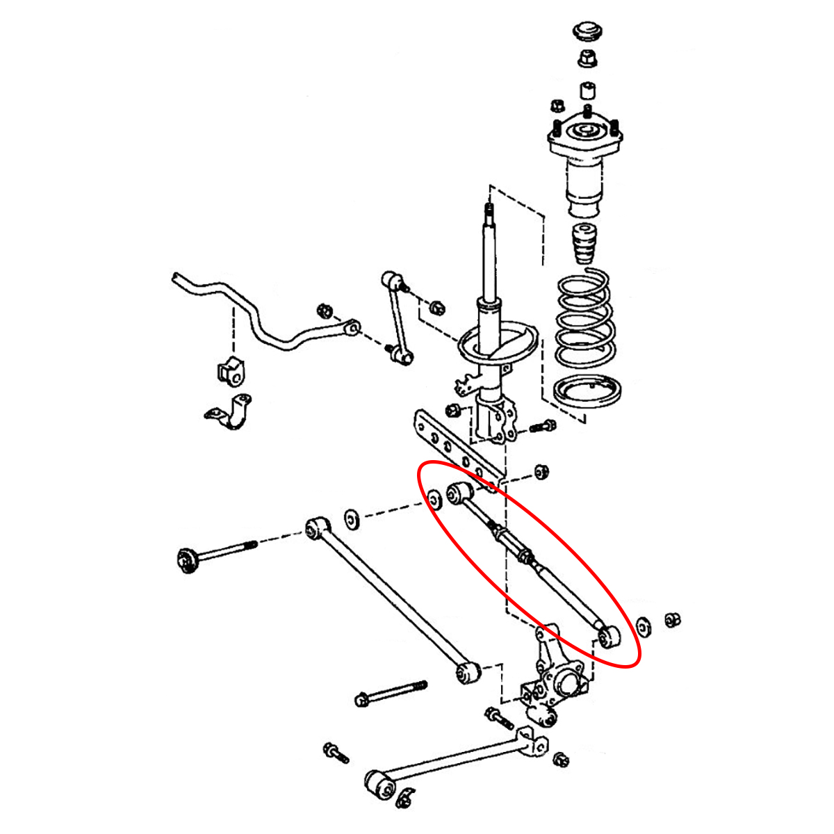 Рычаг задний Toyota Windom/ Camry/ Gracia '96-'01/ Pronard '00-'03/ Qualis '97-'02/ Avalon '96-'04 правый нижний поперечный регулируемый 2WD Akitaka
